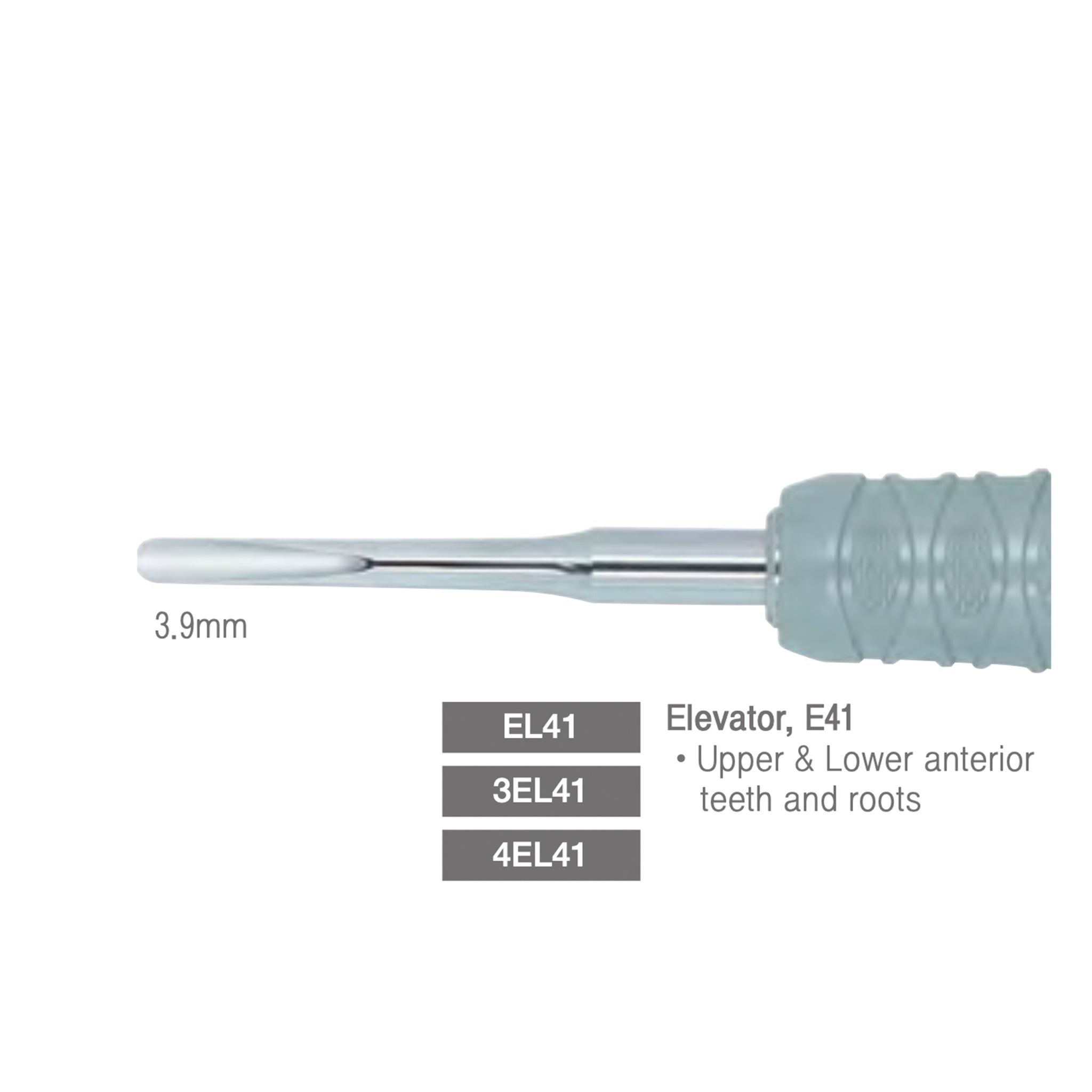 Elevator, Plastic handle, 3EL41The elevator by Osung is used to perform surgical procedures on the roots and the tooth from the periodontal ligament, thereby easing the process of extraction. Osung elevators can be used to evict the entire row of tooth, remove broken-off apical line. Also, the elevator can be used to remove the roots apical portion. Before using the extracting elevator, this 3EL41 can be used to work on the mucoperiosteum. The dental tools working end has sharp blades that can be used to cut periodontal ligaments and make tissue from bone loosen for easy tooth removal. The shank can be positioned so as to access specific areas in the buccal cavity.